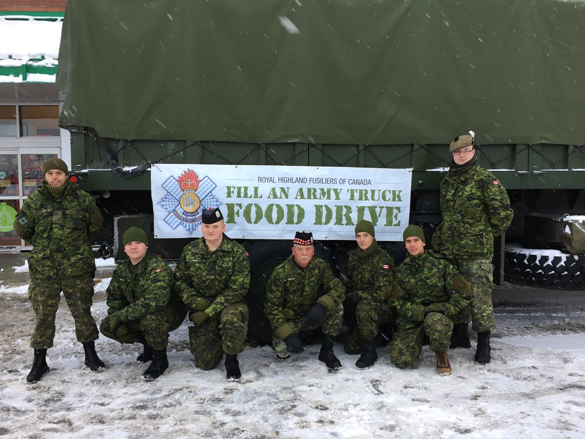 We have been asked to provide some senior cadets to assist with the FILL AN ARMY TRUCK Event along with our friends at the Royal Highland Fusiliers of Canada.