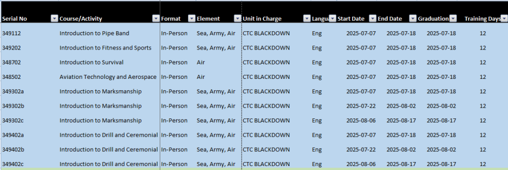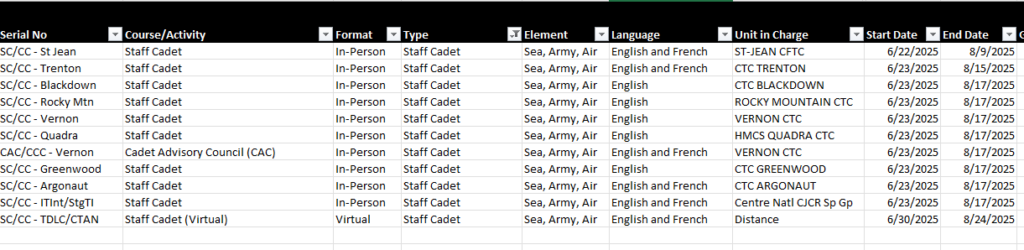 Cadets hlave been sent inforation on how to get added onto the list for any of these courses that are applicable to them. it is on our Sqn sharepoint page, and is in their Outlook C365 mailbox right now.