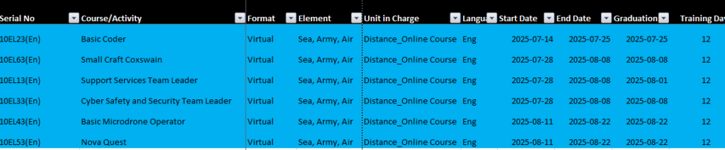 Here are the courses coming summer 2025 for cadets: